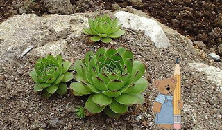 Nous allons enfin mettre en pleine terre la joubarbe et l'autre plante. On a acheté un Sédum Matrona, un pourpier vivace jaune et un lithodora heavenly blue pour créer une sorte de massif rocailleux.